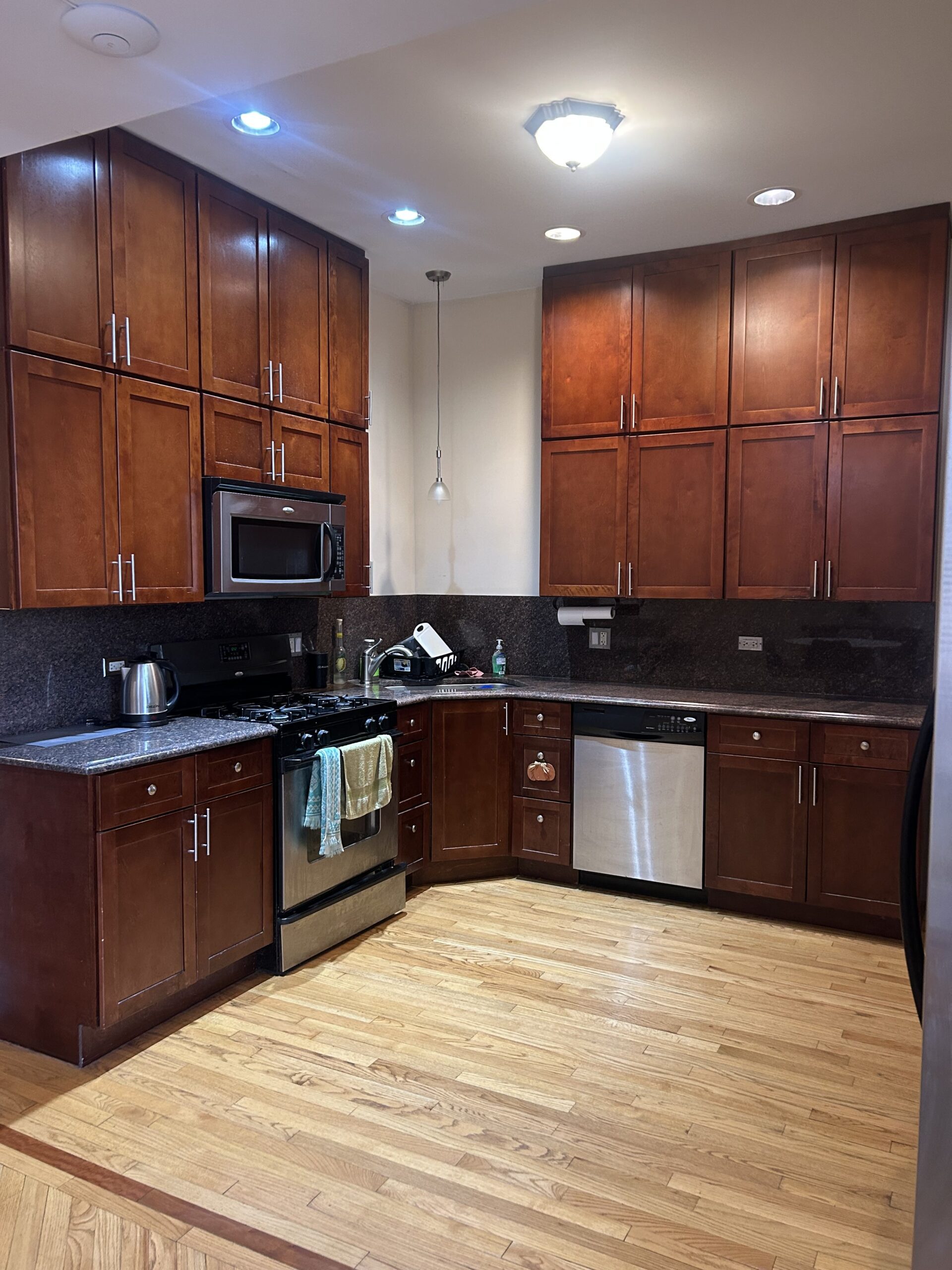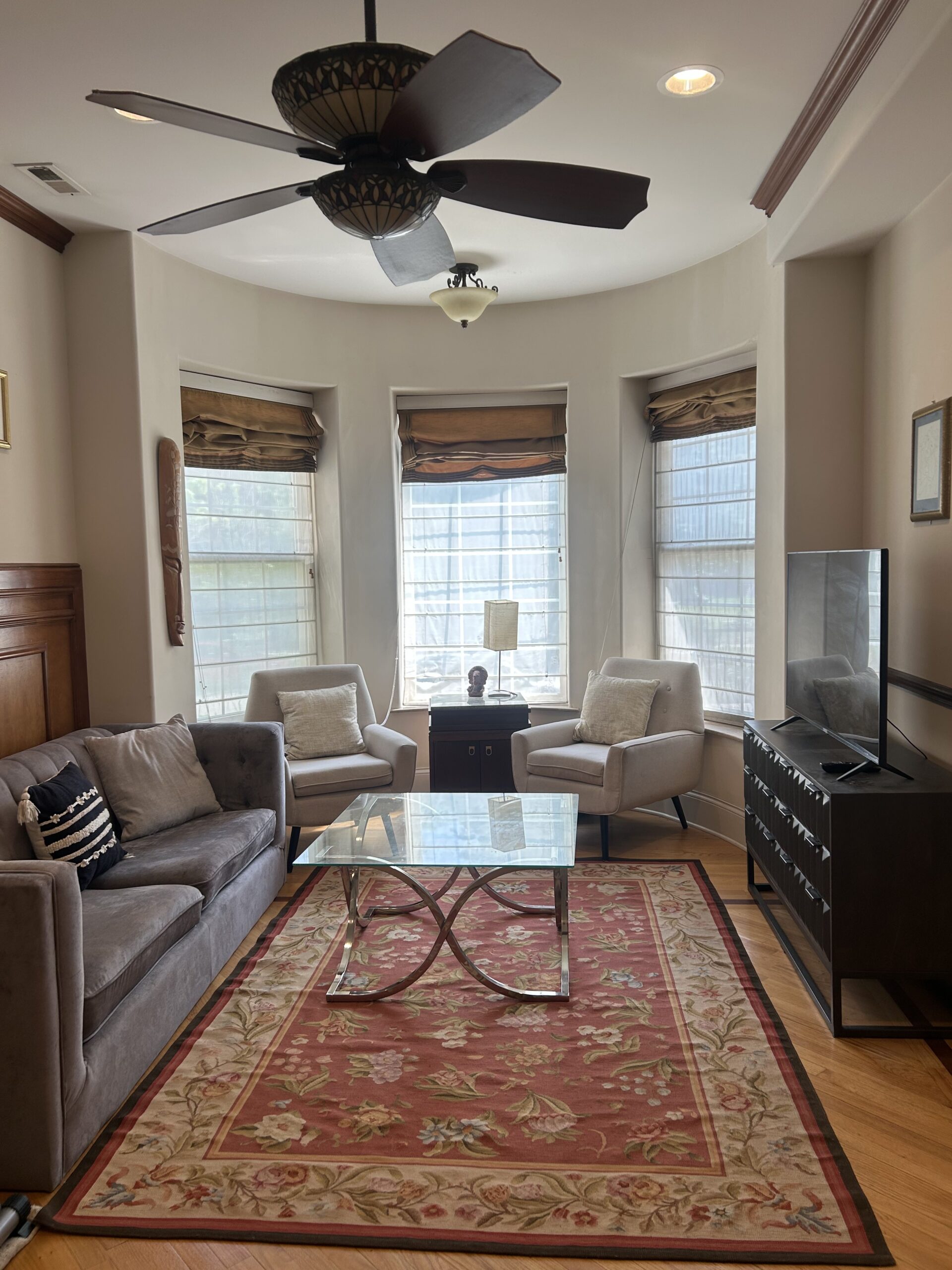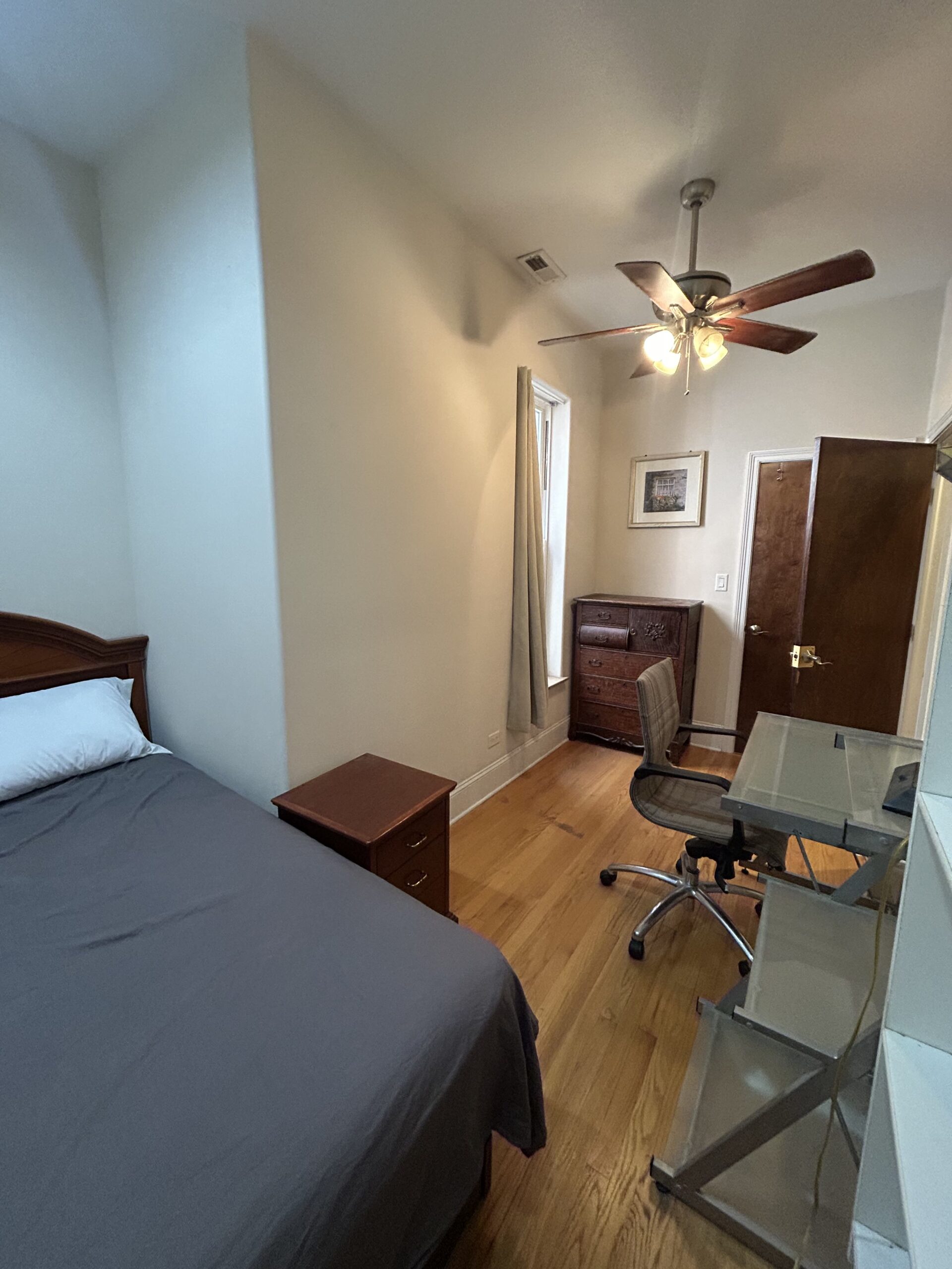 This fully furnished, newly remodeled unit is in a PRIME location at 61st & Kimbark. Just a 10 min walk to campus and Jewel Osco. Open to Undergrad & Graduate students at the University of Chicago. Wi-Fi, water, and trash are included in rent. This unit features 4 fully furnished bedrooms with 2 Bathrooms, one in the master bedroom, and one shared. The kitchen area is open and renovated with modern appliances and connects to the dining area. There’s an in-unit washer & dryer and spacious furnished living room with a TV. Utilities such asGas & electric is split among housemates.